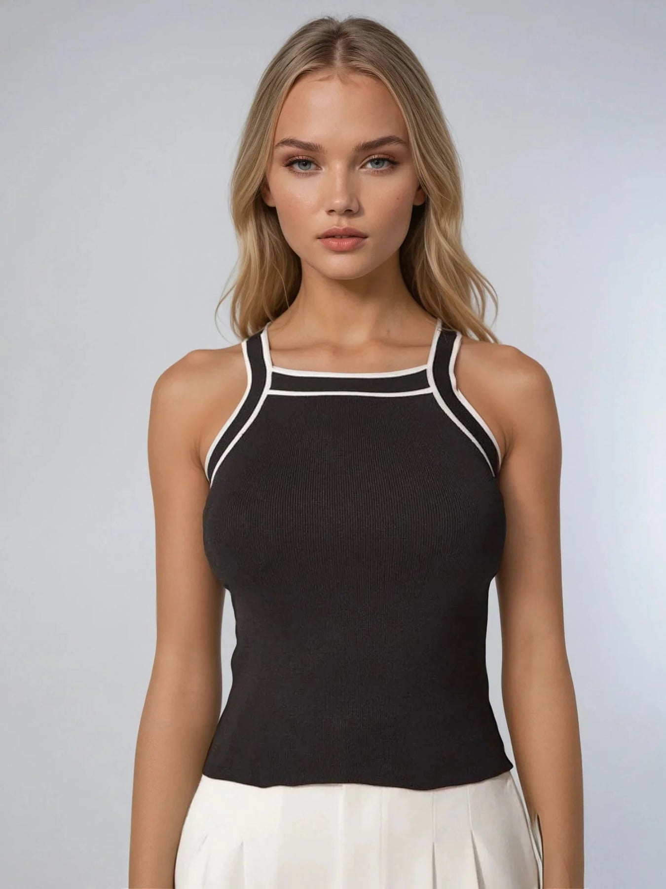 Elegant Style Contrast Trim Knit Tank Top (Size)